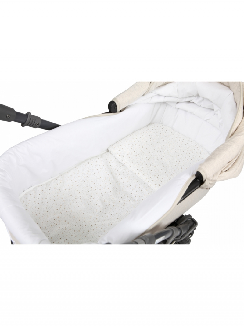Hluboká korba má sklopnou stříšku a v zadní části boudy je větrací okénko, zajištěno zipem a moskytiérou. Uvnitř korbičky je polohovací nástavec, který má dvě polohy a pomůže v přechodu na sporťák. Součástí je nánožník.