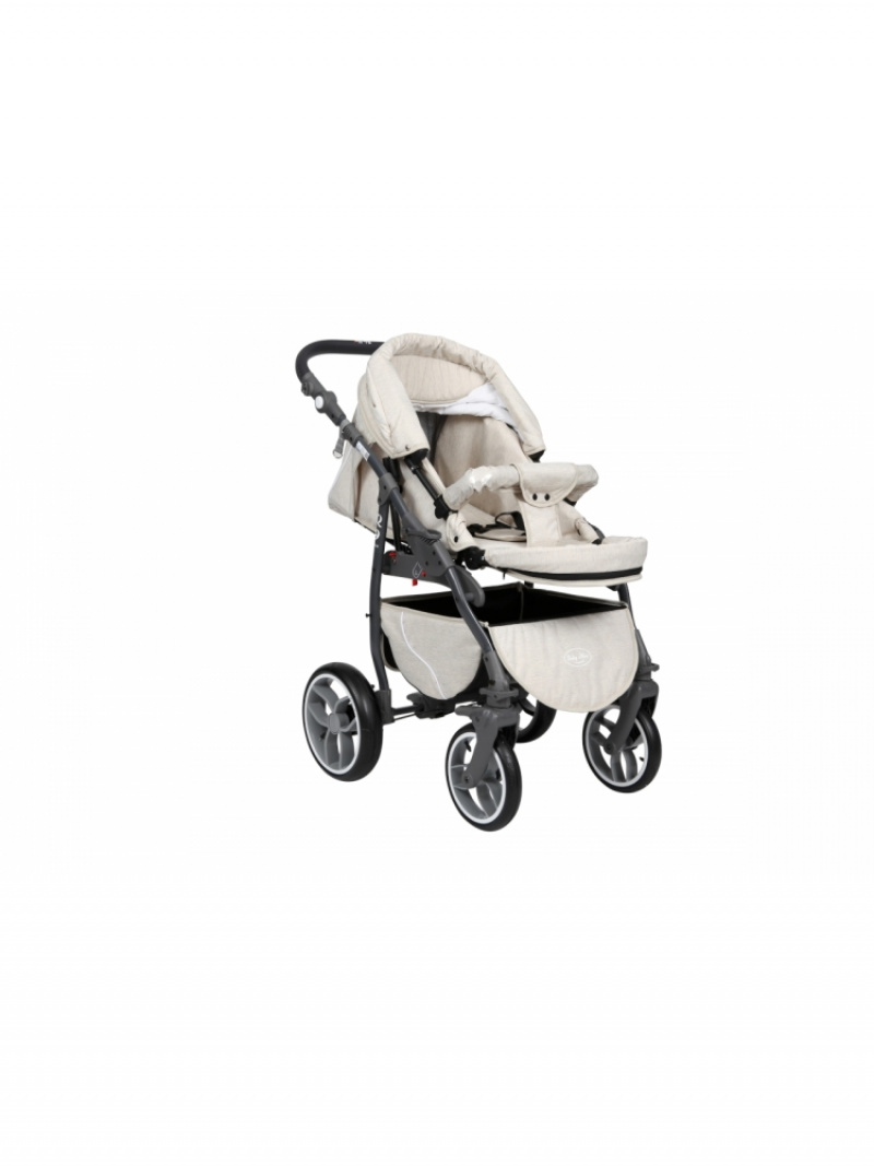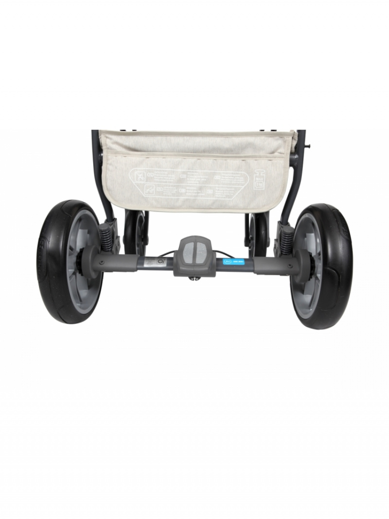 Kočárek je postaven na lehkém aluminiovém rámu se čtyřmi nafukovacími koly. Přední kola jsou otočná s možností aretace. To Vám usnadní průjezd horším terénem, do kterého se větší kola hodí a lehce si s ním poradí. Navíc Vám v terénu pomůže i odpružení všech kol, které pomůže vyrovnat nárazy a nerovnosti povrchu.
