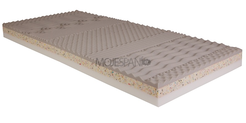 Oboustranná sendvičová matrace se sedmi zónovou profilací na jedné straně a hladkou deskou ze studené pěny na straně druhé. Sedmi zónová profilace zaručuje uživateli lepší prokrvení pokožky a snadnější regeneraci unavených svalů. S...Celý popis produktu