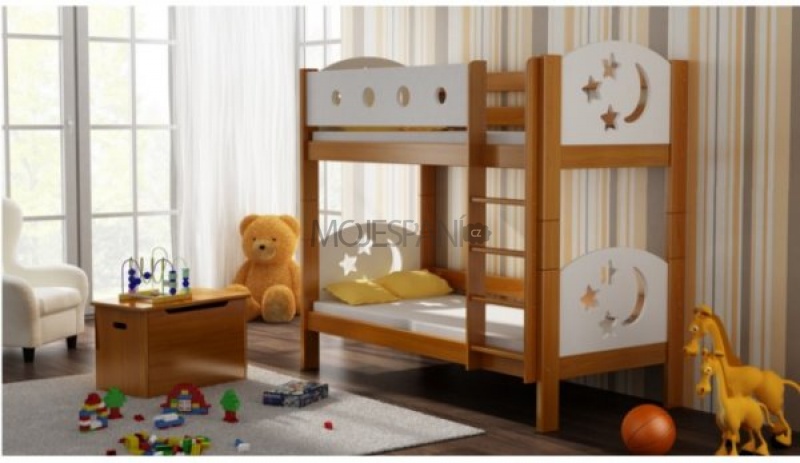 Patrová postel s možností předělání na dvě samostatné postele. Konstrukce postele je vyrobena z vysoce kvalitního borovicového dřeva I. jakosti, která v kombinaci s lakovanou MDF, dává velmi silnou a stabilní konstrukci (zaručena nosnost 190 kg). Všechny prvky této postele, zajišťují tolik potřebnou bezpečnost, hlavné díky zaobleným hranám. Postel je lakována 3x bezbarvým netoxickým lakem. Žebřík lze namontovat na obě strany. Součástí postele jsou samozřejmě i rošty. Výběr barevných kombinací, naleznete níže ve variantách.