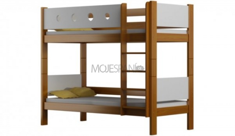 Patrová postel s možností předělání na dvě samostatné postele. Konstrukce postele je vyrobena z vysoce kvalitního borovicového dřeva I. jakosti, která v kombinaci s lakovanou MDF, dává velmi silnou a stabilní konstrukci (zaručena nosnost 190 kg). Všechny prvky této postele, zajišťují tolik potřebnou bezpečnost, hlavné díky zaobleným hranám. Postel je lakována 3x bezbarvým netoxickým lakem. Žebřík lze namontovat na obě strany. Součástí postele jsou samozřejmě i rošty. Výběr barevných kombinací, naleznete níže ve variantách.
