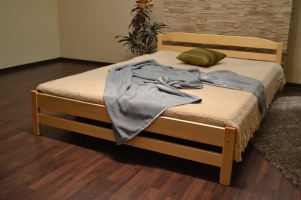 Nová postel z masivu borovice o síle 25 - 28 mm. Postele jsou lakovány dvakrát bezbarvým ekologicky a zdravotně nezávadným lakem. Postele v barevných provedeních olše, dub a ořech, jsou napřed mořeny ve výše zmíněných odstínech a následně dvakrát lakovány průhledným lakem. Barevná provedení naleznete zvlášť.
