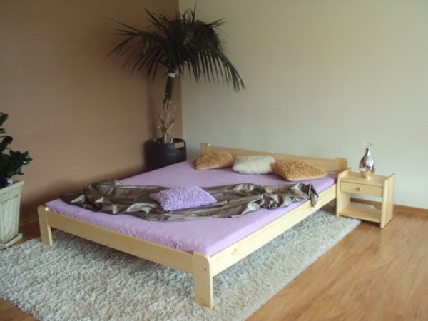 Nová postel z masivu borovice o síle 25 - 28 mm, jejíž součástí je rovněž laťkový rošt. Postele jsou lakovány dvakrát bezbarvým ekologicky a zdravotně nezávadným lakem. Postele v barevných provedeních olše, dub a ořech, jsou napřed mořeny ve výše zmíněných odstínech a následně dvakrát lakovány průhledným lakem. Barevná provedení naleznete zvlášť.