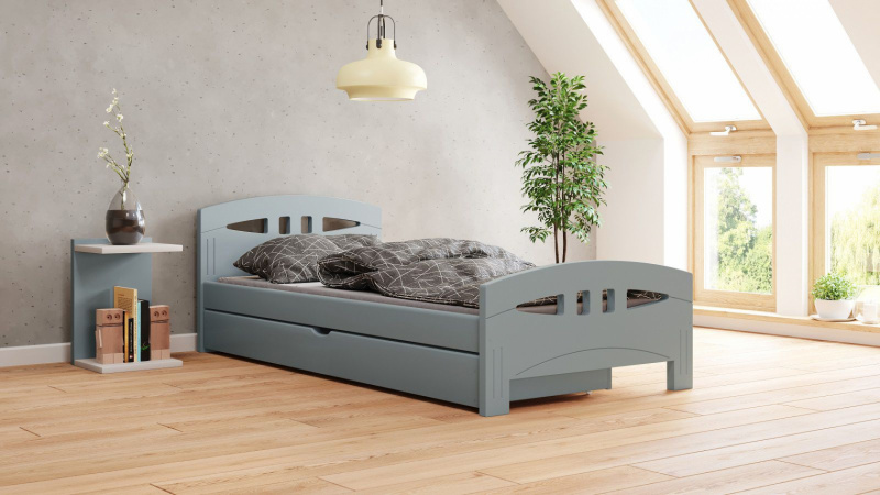 Postel Diana 120/200 cm - šedá + šuplík - masiv smrk 3,5 cm