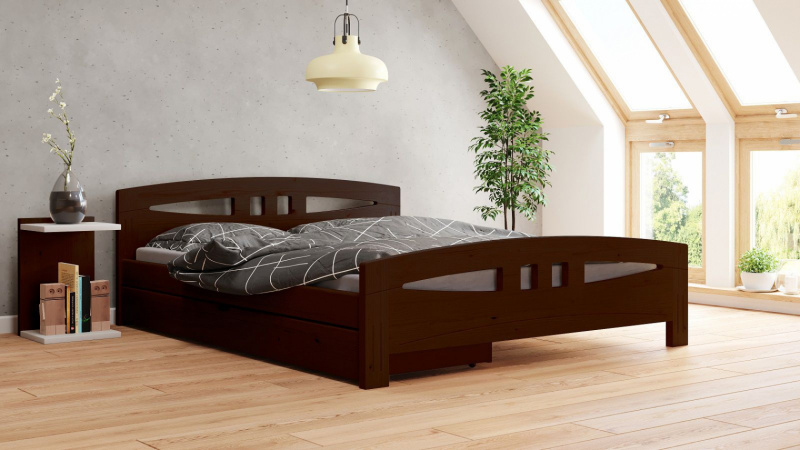 Postel Diana 180/200 cm - ořech + šuplík - masiv smrk 3,5 cm