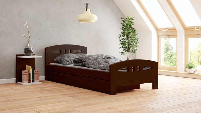 Postel Diana 90/200 cm - ořech + šuplík - masiv smrk 3,5 cm
