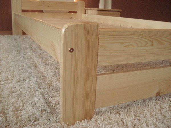 Nová postel z masivu borovice o síle 25 - 28 mm, jejíž součástí je rovněž laťkový rošt. Postele jsou lakovány dvakrát bezbarvým ekologicky a zdravotně nezávadným lakem. Postele v barevných provedeních olše, dub a ořech, jsou napřed mořeny ve výše zmíněných odstínech a následně dvakrát lakovány průhledným lakem. Barevná provedení naleznete zvlášť.