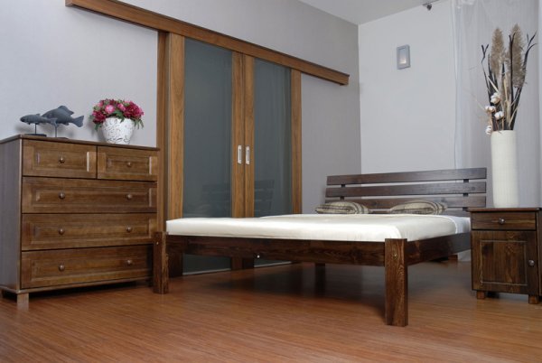 Nová postel z masivu borovice o síle 26 mm. Postele jsou lakovány dvakrát bezbarvým ekologicky a zdravotně nezávadným lakem. Lůžka jsou ručně barvená, broušená a znovu lakovaná, pouze tento postup zaručí požadovaný konečný výsledek . Postel vypadá dokonale a zachovává si svou původní strukturu. Postele v barevných provedeních olše, dub a ořech, jsou napřed mořeny ve výše zmíněných odstínech a následně dvakrát lakovány průhledným lakem. Barevná provedení naleznete zvlášť.