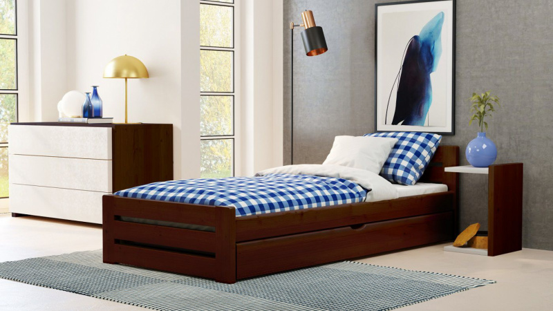 Postel Marek 80/200 cm - ořech + šuplík - masiv smrk 3,5 cm