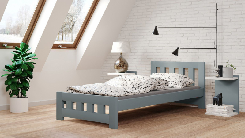 Postel Mirek 120/200 cm - šedá - masiv smrk 3,5 cm