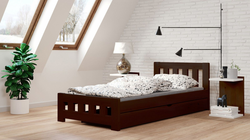 Postel Mirek 90/200 cm - ořech + šuplík - masiv smrk 3,5 cm