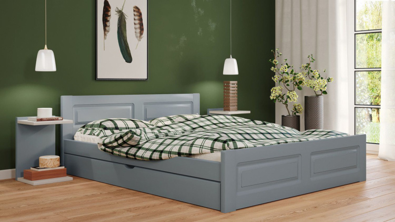 Postel Naďa 160/200 cm - šedá + šuplík - masiv smrk 3,5 cm
