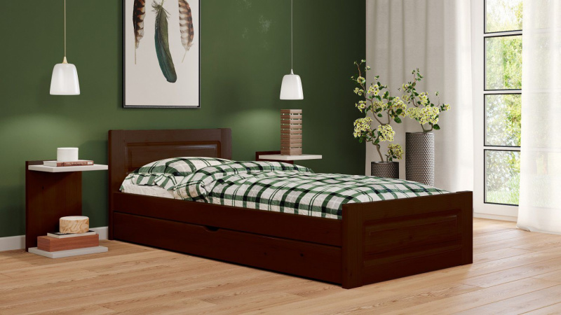 Postel Naďa 80/200 cm - ořech + šuplík - masiv smrk 3,5 cm
