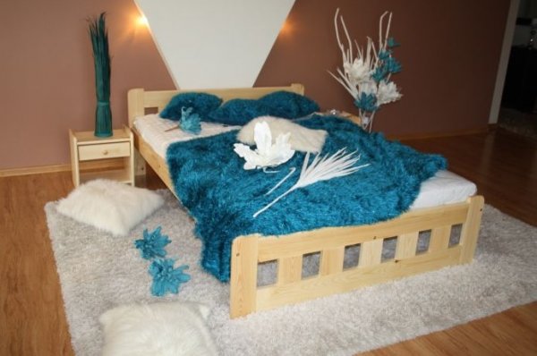Nová postel z masivu borovice o síle 25 - 28 mm. Tato postel je proti ostatním postelím z masivu zvýšená o cca 10 cm. Je proto vhodná pro osoby s onemocněním pohybového aparátu. Výška roštu od země je cca 34 cm. Postele jsou lakovány dvakrát bezbarvým ekologicky a zdravotně nezávadným lakem. Postele v barevných provedeních olše, dub a ořech, jsou napřed mořeny ve výše zmíněných odstínech a následně dvakrát lakovány průhledným lakem. Barevná provedení naleznete zvlášť.