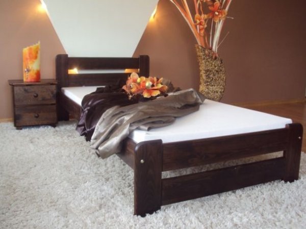 Nová postel z masivu borovice o síle 25 - 28 mm, jejíž součástí je rovněž laťkový rošt. Postele jsou lakovány dvakrát bezbarvým ekologicky a zdravotně nezávadným lakem. Postele v barevných provedeních olše, dub a ořech, jsou napřed mořeny ve výše zmíněných odstínech a následně dvakrát lakovány průhledným lakem. Barevná provedení naleznete zvlášť.