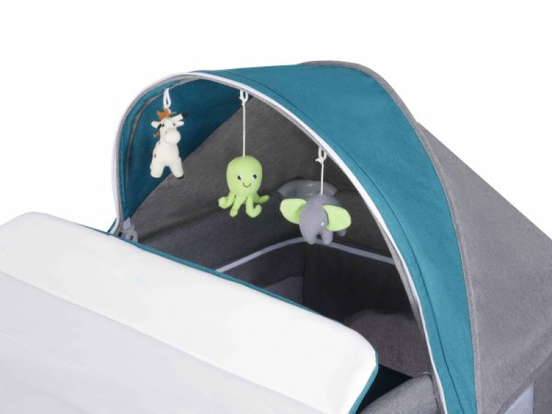 Praktický design - postýlka je vybavena postranním vchodem na zip pro starší děti. Na dlouhých stranách poskytuje vzdušná síť dostatečnou cirkulaci vzduchu a nezbytnou kontrolu Vašeho dítěte.