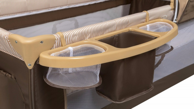 Dvouúrovňová postýlka, kterou mohou používat novorozenci i staršími dětmi. Může to být postel nebo ohrádka. Boční otvor umožňuje starším dětem pohybovat se volně a nezávisle. Síťka proti komárům připojená k soupravě chrání před hmyzem, takže je můžete nastavit pod širým nebem bez obav z napadení komáry.
