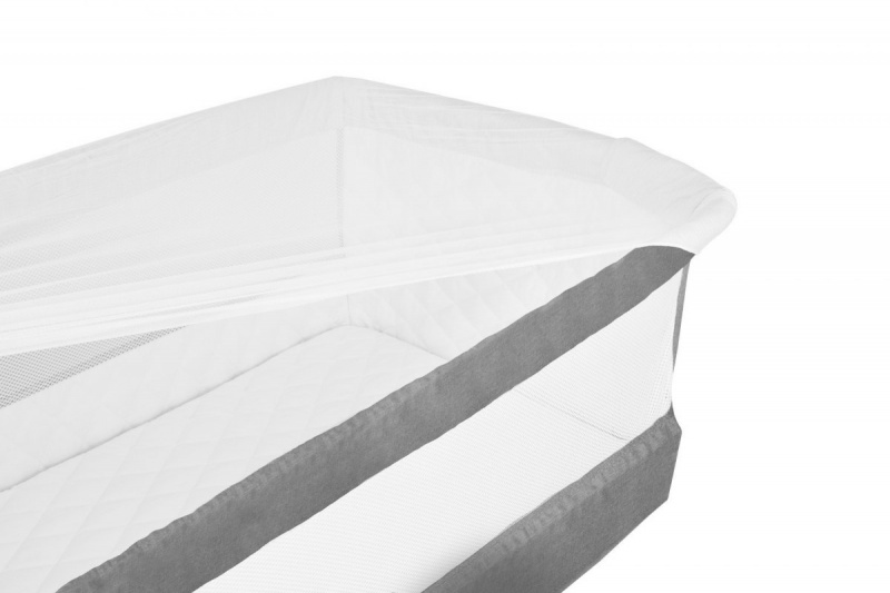 Délka výčnělků kol umožňuje přizpůsobit dětskou postýlku velikosti postele rodičů a přivést ji co nejblíže. Kromě nastavitelné šířky jsou kola vybavena také blokovacím systémem. Umožní volný pohyb po bytě, takže spící batole je vždy v dohledu pečující matky a otce. Síťka proti hmyzu a přepravní a ochranná taška jsou součástí postýlky.