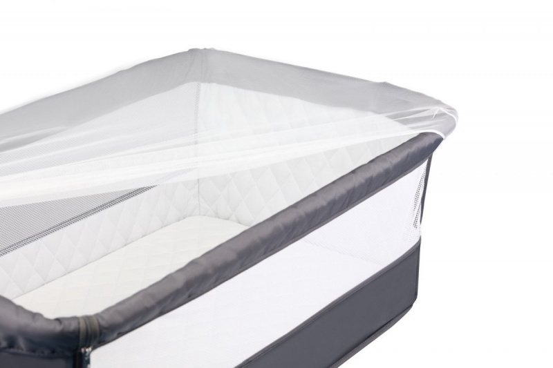 Délka výčnělků kol umožňuje přizpůsobit dětskou postýlku velikosti postele rodičů a přivést ji co nejblíže. Kromě nastavitelné šířky jsou kola vybavena také blokovacím systémem. Umožní volný pohyb po bytě, takže spící batole je vždy v dohledu pečující matky a otce. Síťka proti hmyzu a přepravní a ochranná taška jsou součástí postýlky.