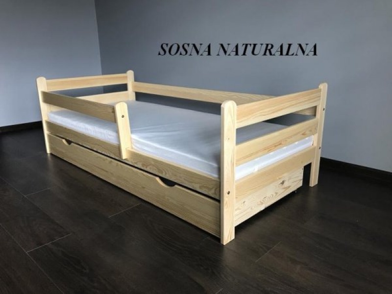 Dětská postel je vyrobena z masivu borovice. Postel nejen pro větší děti s ochrannou bariérkou. Bariérku je možno namontovat jak z levé, tak i z pravé strany. Součástí této postýlky je matrace PUR pěna s potahem. Potah této matrace je snímatelný a pratelný. Postel je vyrobena z masivu borovicového dřeva a součástí je i objemná zásuvka. Součástí této postýlky jsou z bezpečnostních důvodů zaoblené rohy. Postel je lakována ekologicky nezávadným lakem, vhodným pro styk s dítětem. Snížený práh, umožňuje používat tuto postel i pro nejmenší děti. Lakováno vodou ředitelný ekologickým lakem. NOSNOST POSTELE JE 80 KG.