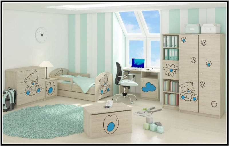 Postel 160/80 cm + matrace + rošt kočička modrá dub sonoma