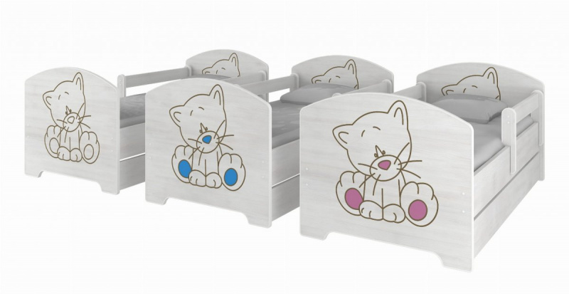 Dětská postel je vyrobena z masivu borovice a MDF materiálu, součástí je rovněž matrace i šuplík. Na čelech postele je vygravírován ( vyřezán ) nádherný dětský motiv, který nadchne Vaší ratolest. Trojrozměrné gravírování, rozvíjí u dětí představivost nejen zrakovou, ale rovněž hmatovou. Postel nejen pro větší děti s ochrannými barierkami. Součástí této postýlky jsou z bezpečnostních důvodů zaoblené rohy. Snížený práh, umožňuje používat tuto postel i pro nejmenší děti. Nosnost postele 90 kg.