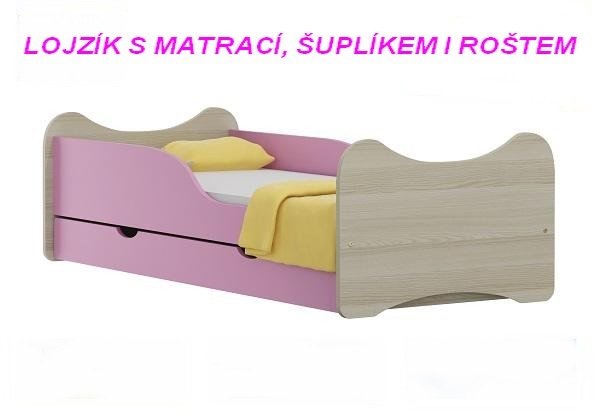 Postel Lojzík N21 180/90 cm + matrace + šuplík růžový