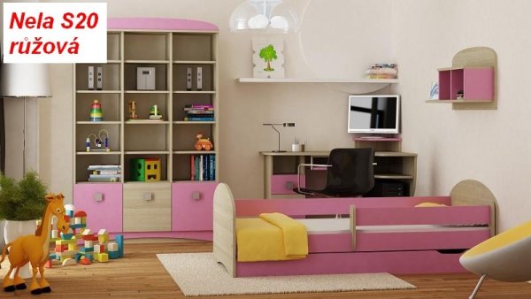 Postel Nela N20 140/70 cm + matrace + šuplík růžová