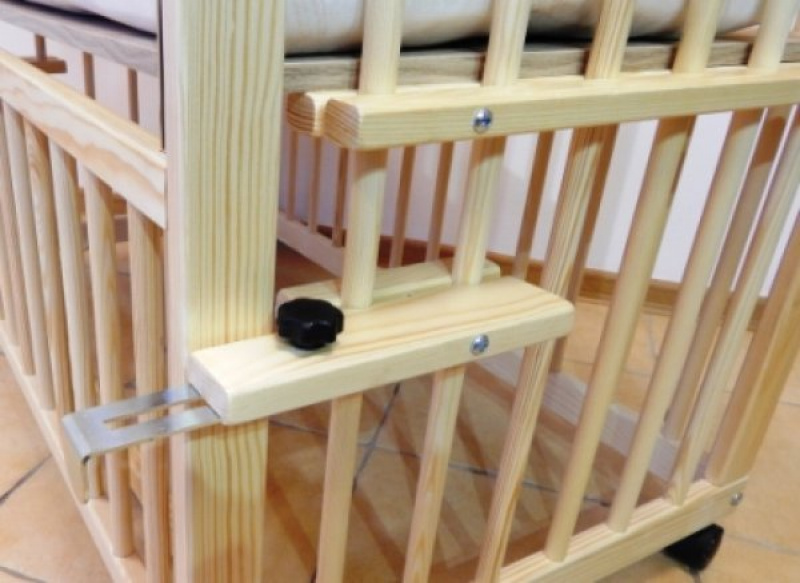 Přístavní postýlka Darina je malá postýlka, která má stahovací jeden bok. Po snížení boku, lze postýlku přisunout a spojit s posteli rodičů a tím usnadníme mamince noční kojení miminka. Miminko spí zároveň s rodiči a zároveň samostatně. Po opětovném zvýšení boku, získáme postýlku. Lakováno netoxickým lakem. Čtyři kolečka i matrace, jsou součástí postýlky.