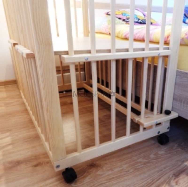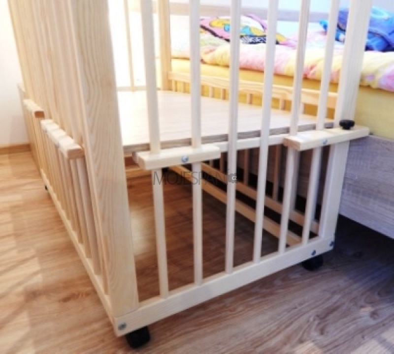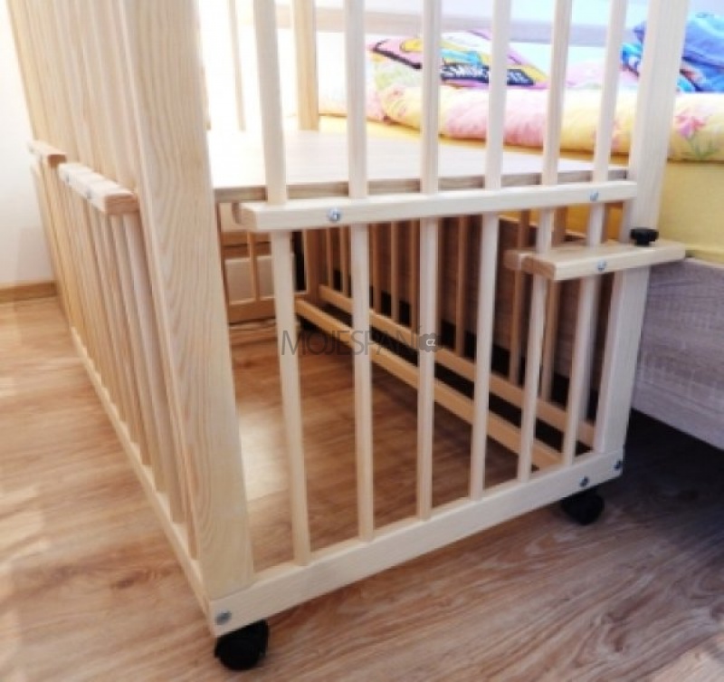 Přístavní postýlka Darina je malá postýlka, která má stahovací jeden bok. Po snížení boku, lze postýlku přisunout a spojit s posteli rodičů a tím usnadníme mamince noční kojení miminka. Miminko spí zároveň s rodiči a zároveň samostatně. Po opětovném zvýšení boku, získáme postýlku. Lakováno netoxickým lakem. Čtyři kolečka i matrace, jsou součástí postýlky.
