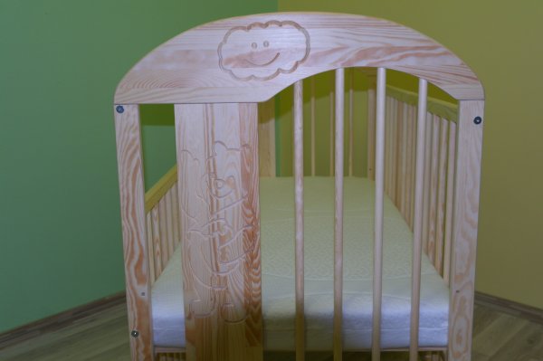 Dětská postýlka je vyrobena výhradně z masivního borovicového dřeva. Má tři nastavitelné výšky roštu a spouštěcí bočnici. Jednodušše vyjímatelné dvě středové tyče na pružinový mechanismus, pro jednouduchý vstup i výstup starších dětí. Tento produkt je 100% vhodný pro dítě, a je proveden v souladu s přísnými požadavky Evropské unie. Je certifikován podle normy EN 716 1 a 2. Postýlka je lakovaná lakem na organické bázi - jedená se o vodou ředitelný lak.