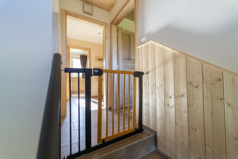 Potřebujete dvířka zábrany otevírat pouze do určité strany ? Na tento případ jsme také mysleli a vytvořili pro něj jednoduchý zajišťovací zámek, který jsme umístili na spodní část zábrany – z každé strany jeden. Zkrátka otočíte tím zámečkem, kterým potřebujete.