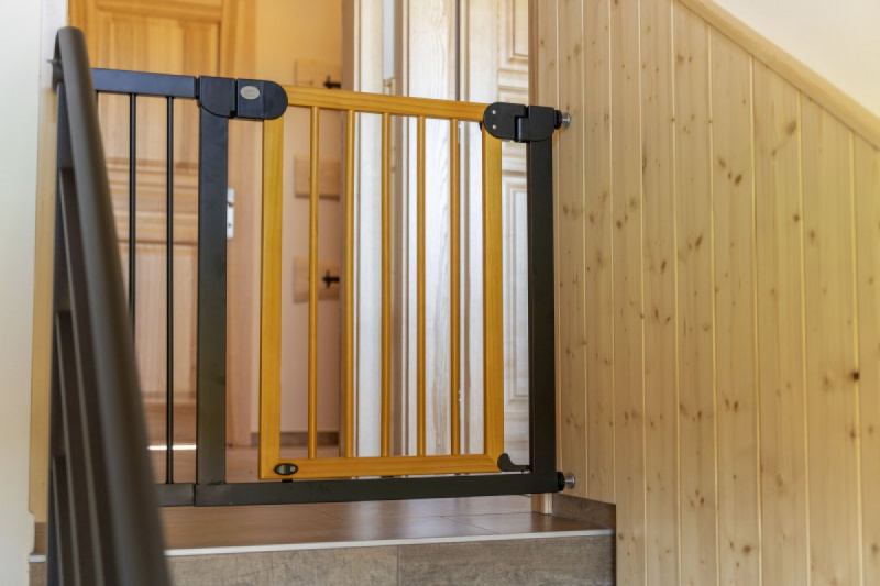 Zábrana PupyHou 76-83 cm kov/dřevo - světlá