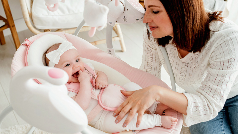 - upravuje rychlost kývání podle hmotnosti dítěte