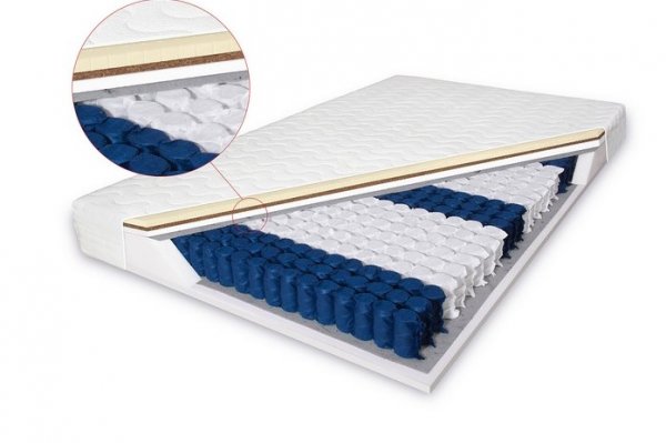 Oboustranná středně tvrdá matrace ve složení: molitan-taštičky-molitan-kokos-latex.