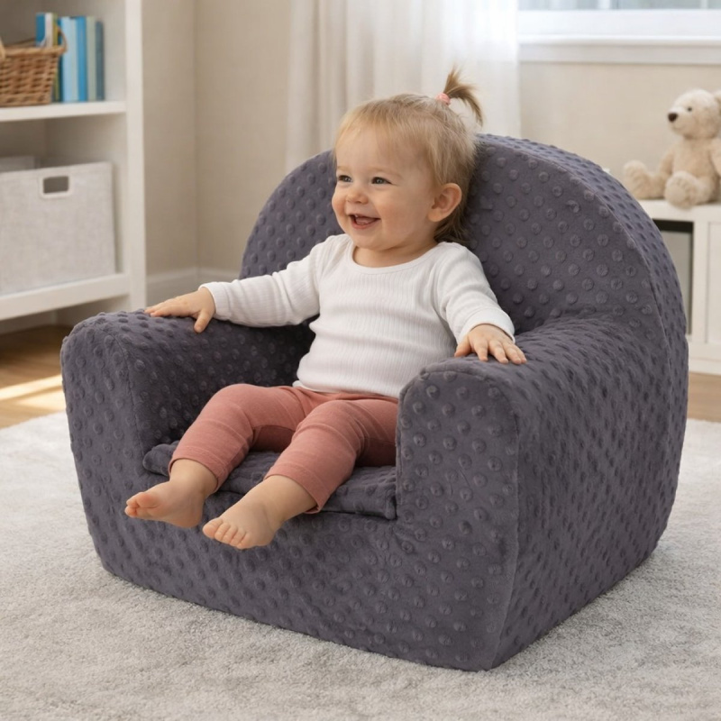 Dětské křesílko z kolece minky je velmi příjemné na dotek, pohodlené a odolné. Je vyrobeno z polyuretanové pěny (PUR T25), což zaručuje nízkou hmotnost. Pěnové díly jsou k sobě pevně spojeny, takže křeslo drží svůj tvar i po sundání potahu. Potah křesla je z kvalitního polyesteru, je sundávací a můžete jej prát při teplotě 30°C.