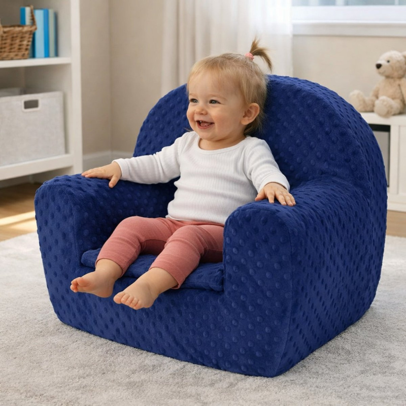 Dětské křesílko z kolece minky je velmi příjemné na dotek, pohodlené a odolné. Je vyrobeno z polyuretanové pěny (PUR T25), což zaručuje nízkou hmotnost. Pěnové díly jsou k sobě pevně spojeny, takže křeslo drží svůj tvar i po sundání potahu. Potah křesla je z kvalitního polyesteru, je sundávací a můžete jej prát při teplotě 30°C.
