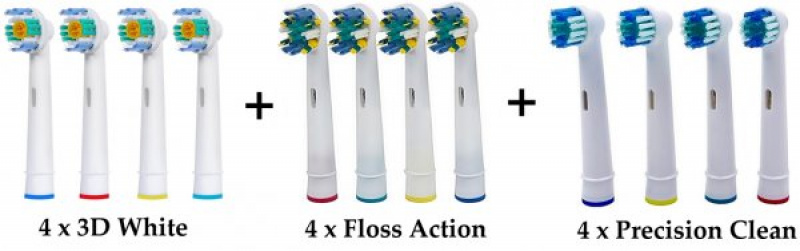 Maxi balení 12-ti koncovek kompatibilních se zubními kartáčky ORAL-B. Balení se skládá se třech koncovek po čtyřech kusech.