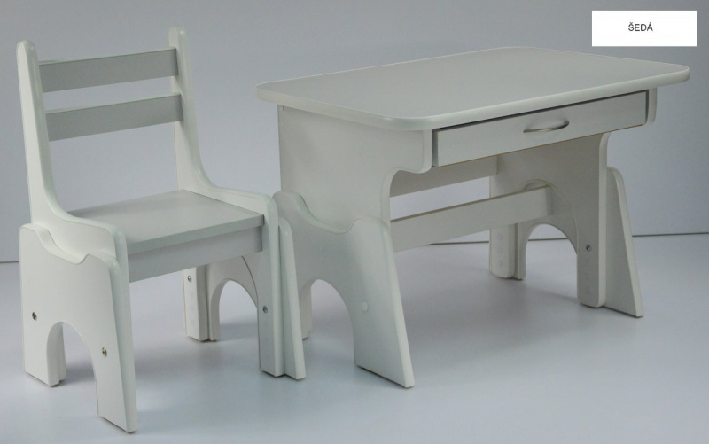 Stůl + židlička B1 - regulace výšky šedo-bílá