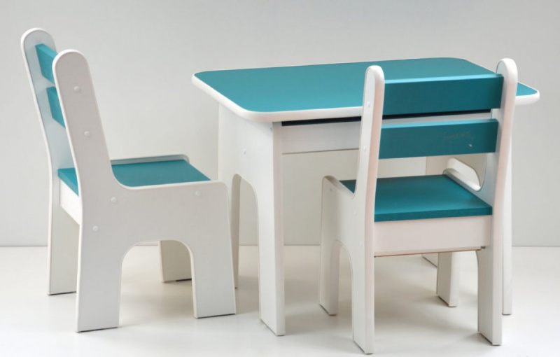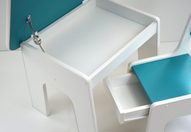 Deska stolu je zvedána pomocí mechanického zdvihu s nastavitelnou tlakovou silou, kterou lze přizpůsobit věku a síle dítěte. Nábytek je určen pro děti od 1,5 do 7 let. Desky stolu a židle jsou vyrobeny z laminované nábytkové desky, takže je velmi snadné udržet je v čistotě (stačí otřít vlhkým hadříkem). Nohy židlí a stolu jsou z olše. Dvakrát natřený nezávadným lakem. Všechny barvy mají požadované certifikáty a jsou zcela bezpečné pro děti. Jedná se o speciální barvy na nátěr nábytku a dětských hraček. Tento jedinečný komplet, bude sloužit Vašim dětem k jídlu, kreslení, hraní atd. Díky skladovacím prostorům budou mít Vaše děti své tajné úložiště