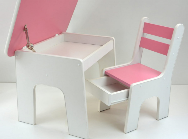 Sada obsahuje stůl a dvě židle. Obě vysoké židle s ukrytými zásuvkami. Stolek má otevírací desku. Díky nim si mohou děti užívat spoustu legrace a radosti, že mohou skrýt své poklady. A Vy máte méně věcí na úklid :). Barvičky, sešity nebo omalovánky lze snadno umístit do stolu. Na druhé straně jsou židle skvělým úkrytem pro tužky, pera nebo jiné menší hračky.