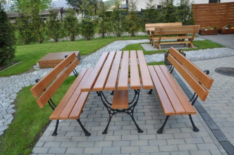 Zahradní sestava Koval v jednoduchém stylu, kde jsou výrazným prvkem nohy z litiny. Výrobek je vyroben ze smrkového dřeva I. jakosti, délka stolu a laviček 160 cm pokrytých kvalitní barvou v odstínu teak. Nabízíme nejlepší cenu v ČR.