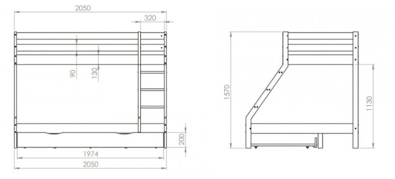 Tato zajímavá patrová postel je vyrobena z masivu borovice a slouží jako postel pro dvě až tři osoby. Horní postel má rozměr 90x200 cm a spodní postel 140x200 cm. Síla použitého masivu, zajišťuje pevnou a stabilní konstrukci....Celý popis produktu