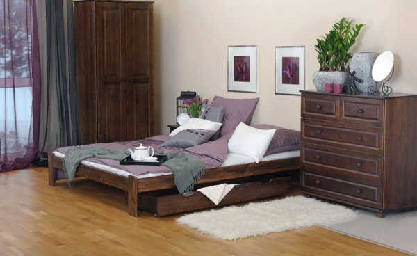 Nová postel z masivu borovice o síle 26 mm. Postele jsou lakovány dvakrát bezbarvým ekologicky a zdravotně nezávadným lakem. Lůžka jsou ručně barvená, broušená a znovu lakovaná, pouze tento postup zaručí požadovaný konečný výsledek . Postel vypadá dokonale a zachovává si svou původní strukturu. Postele v barevných provedeních olše, dub a ořech, jsou napřed mořeny ve výše zmíněných odstínech a následně dvakrát lakovány průhledným lakem. Barevná provedení naleznete zvlášť.