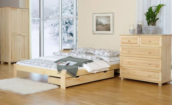 Nová postel z masivu borovice o síle 26 mm. Postele jsou lakovány dvakrát bezbarvým ekologicky a zdravotně nezávadným lakem. Lůžka jsou ručně barvená, broušená a znovu lakovaná, pouze tento postup zaručí požadovaný konečný výsledek . Postel vypadá dokonale a zachovává si svou původní strukturu. Postele v barevných provedeních olše, dub a ořech, jsou napřed mořeny ve výše zmíněných odstínech a následně dvakrát lakovány průhledným lakem. Barevná provedení naleznete zvlášť.
