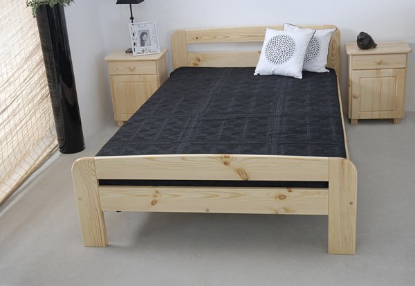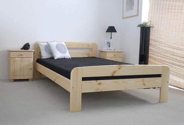 Nová postel z masivu borovice o síle 26 mm. Postele jsou lakovány dvakrát bezbarvým ekologicky a zdravotně nezávadným lakem. Lůžka jsou ručně barvená, broušená a znovu lakovaná, pouze tento postup zaručí požadovaný konečný výsledek . Postel vypadá dokonale a zachovává si svou původní strukturu. Postele v barevných provedeních olše, dub a ořech, jsou napřed mořeny ve výše zmíněných odstínech a následně dvakrát lakovány průhledným lakem.