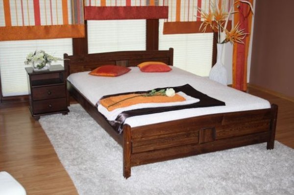 Nová postel z masivu borovice o síle 25 - 28 mm. Postele jsou lakovány dvakrát bezbarvým ekologicky a zdravotně nezávadným lakem. Postele v barevných provedeních olše, dub a ořech, jsou napřed mořeny ve výše zmíněných odstínech a následně dvakrát lakovány průhledným lakem. Barevná provedení naleznete zvlášť.