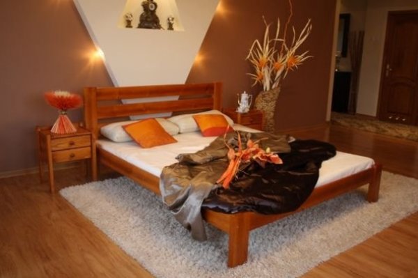 Nová postel z masivu borovice o síle 25 - 45 mm, jejíž součástí je rovněž laťkový rošt. Postele jsou lakovány dvakrát bezbarvým ekologicky a zdravotně nezávadným lakem. Postele v barevných provedeních olše, dub a ořech, jsou napřed mořeny ve výše zmíněných odstínech a následně dvakrát lakovány průhledným lakem. Barevná provedení naleznete zvlášť.