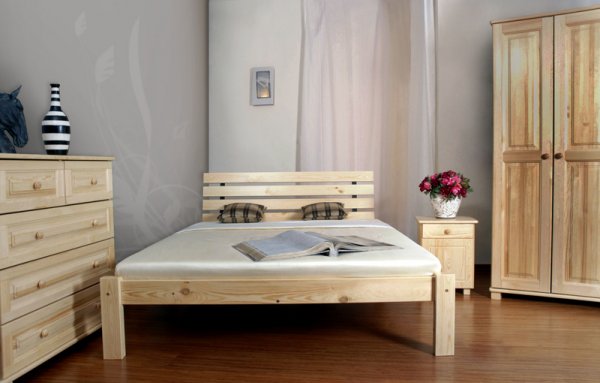 Nová postel z masivu borovice o síle 26 mm. Postele jsou lakovány dvakrát bezbarvým ekologicky a zdravotně nezávadným lakem. Lůžka jsou ručně barvená, broušená a znovu lakovaná, pouze tento postup zaručí požadovaný konečný výsledek . Postel vypadá dokonale a zachovává si svou původní strukturu. Postele v barevných provedeních olše, dub a ořech, jsou napřed mořeny ve výše zmíněných odstínech a následně dvakrát lakovány průhledným lakem. Barevná provedení naleznete zvlášť.