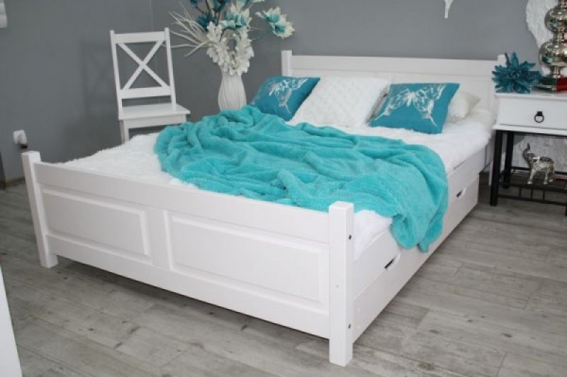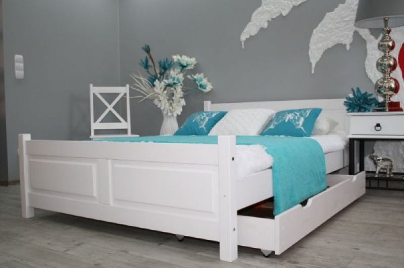 Postel Lenka bíla 160 x 200 cm masiv borovice
